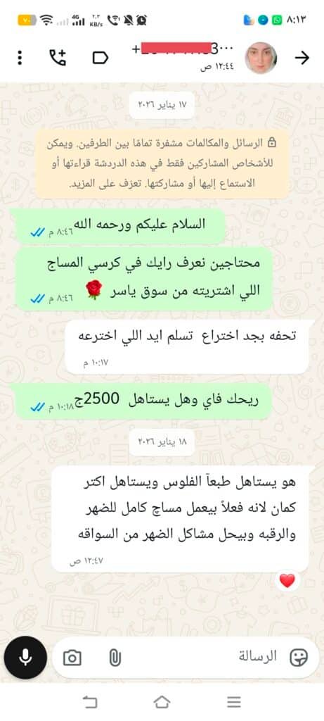 كل العملاء دول اختاروا صح وبسعر أقل من عزومة حلوة او صينية فمطعم او جزمة شيك أو طقم مركون عندك فالدولاب أشتري جهاز يريح ظهره ورقبته بعد يوم طويل من التعب ✅