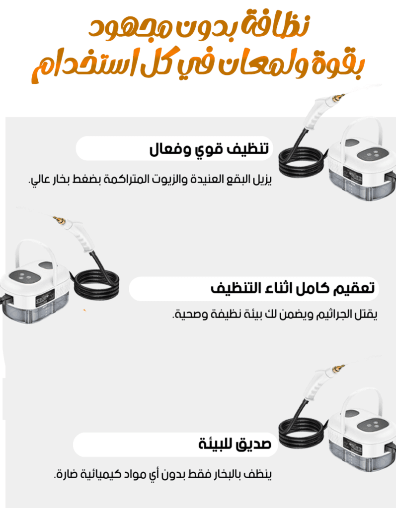 -بخار قوي يقتل البكتيريا ويشيل الروائح